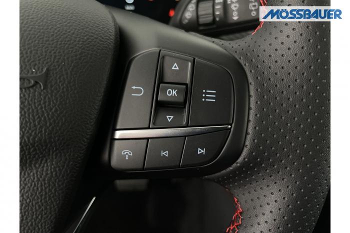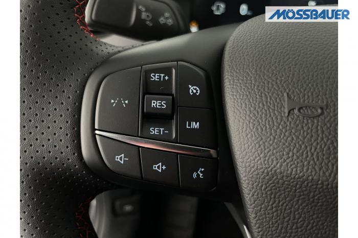 DAB/DAB+ (Digital Audio Broadcasting), Ford SYNC 4 inkl. Ford Navigationssystem, Induktive Ladestation für mobile Endgeräte, USB-Anschluss, Ambientebeleuchtung vorn, LED-Rückleuchten, LED-Scheinwerfer, Seitenscheiben ab 2. Sitzreihe und Heckscheibe dunkel getönt, Dachhimmel aus Webstoff, Schwarz, Lenkrad, ST-Line-Design, unten abgeflacht und mit roten Ziernähten, Sensico in Leder-Optik, Lenkrad, beheizbar, Mittelkonsole vorn mit integrierter Armauflage, Frontscheibe, beheizbar, Klimaanlage mit automatischer Temperaturkontrolle, für Fahrer und Beifahrer getrennt regelbar (2-Zonen-Klimaautomatik), Winter-Paket (Vordersitze, beheizbar / Frontscheibe, beheizbar / Lenkrad, beheizbar / Äußere Rücksitze, beheizbar), 18, Leichtmetallräder 5-Speichen-Design in Rock Metallic, Notrad, Frontairbag für Fahrer und Beifahrer, Kopf-und Schulterairbags vorne und hinten, eCall, Vordersitze, beheizbar, Vordersitze, manuell einstellbar inkl. manuell einstellbarer Lendenwirbelstütze, Äußere Rücksitze, beheizbar, Ford Protect Garantie-Schutzbrief, für das 3. bis 5. Jahr bis max. 100.000km, 12-Volt-Anschluss im Gepäckraum, Fahrspur-Assistent inkl. Fahrspurhalte-Assistent, Fernlicht-Assistent [#07] , Feststellbremse, elektrisch mit Auto Hold-Funktion, Ford Key Free-System, Geschwindigkeitsregelanlage, Park-Pilot-System, vorn und hinten, Reifendruckkontrollsystem (TPMS), Rückfahrkamera, Scheibenwischer mit Regensensor, Selektiver Fahrmodus-Schalter (Normal, Sport, Eco, Rutschig und unbefestigte Straßen), Umstellung Infotainment / Bordcomputer auf DE, Verkehrsschild-Erkennungssystem [#C8] , Anhängevorrichtungs-Vorbereitungs-Set, Außenspiegel in Wagenfarbe lackiert, EU-Fahrzeug mit Tageszulassung