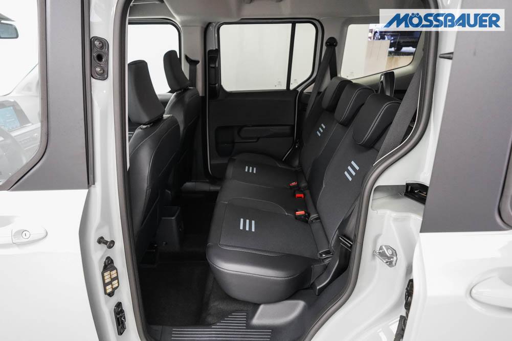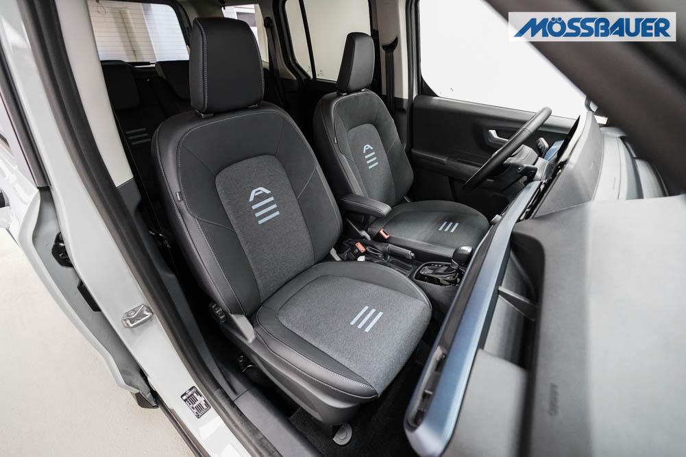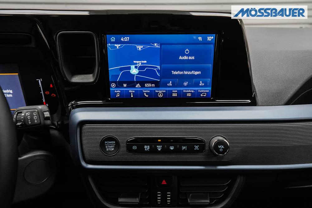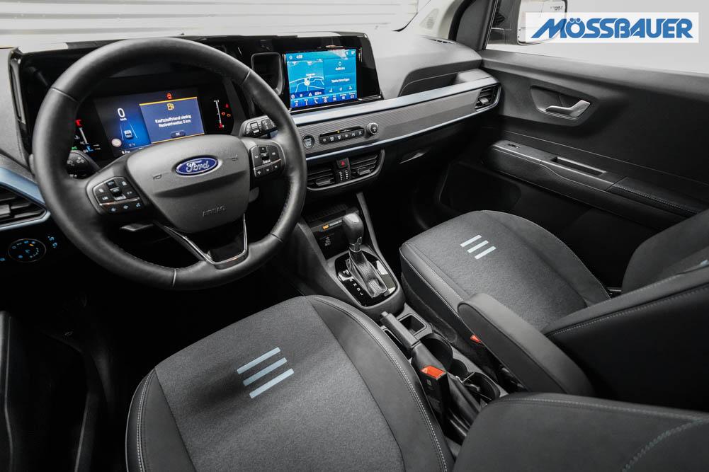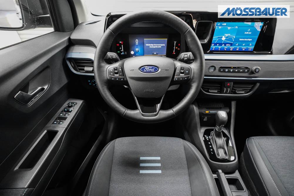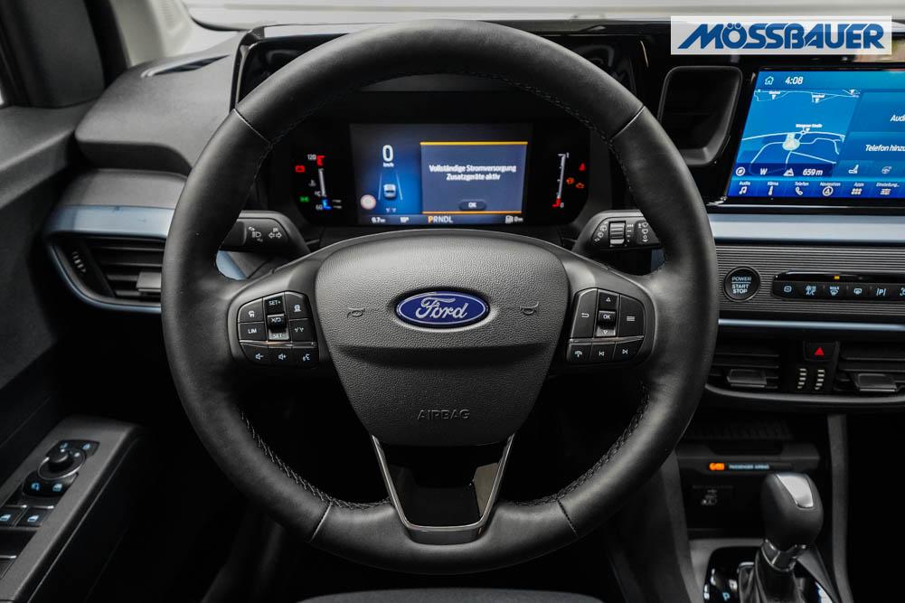 Fahrersitz höhenverstellbar, Sitzbezug Stoff, Lenkrad höhenverstellbar, Beheizbares Lenkrad, Isofix, 17 Zoll Alufelgen, Dachreling silber, Stoßfänger in Wagenfarbe, Türgriffe in Wagenfarbe, Schiebetür rechts, Schiebetür links, Schiebetür beidseitig, ABS, Außenspiegel elektrisch anklappbar, Fensterheber elektrisch, Klimaautomatik, Kopfairbags, Seitenairbags, Servolenkung, Sitzheizung vorne, ESP, Wegfahrsperre, Zentralverriegelung mit Funk, Beifahrerairbag, Fahrerairbag, Parkpilot hinten, Parkpilot vorne, Reifendruckkontrolle, Frontscheibe beheizbar, 8 Zoll digitales Kombiinstrument, adaptive Geschwindigkeitsregelung, Totwinkelassistent, Verkehrszeichenerkennung, Tagfahrlicht, Rückfahrkamera, StartStopSystem, Winterpaket, Berganfahrassistent, Müdigkeitswarnsystem, Notrufsystem, Geschwindigkeitsbegrenzer, Android Auto, Apple Carplay, Freisprecheinrichtung, Induktionsladestation, Touchscreen, USB, Radio DAB, Bluetooth, Bordcomputer, Navigationssystem, Ford Protect Erweiterte Werksgarantie 5 Jahre / 150.000 km,