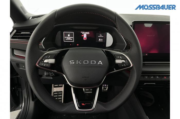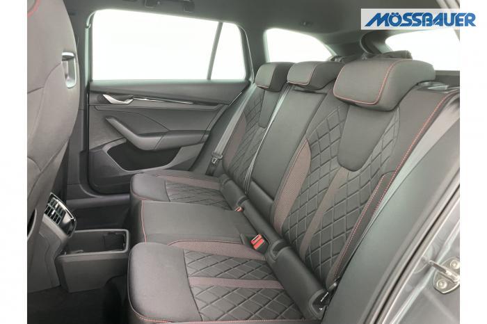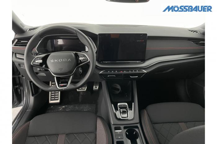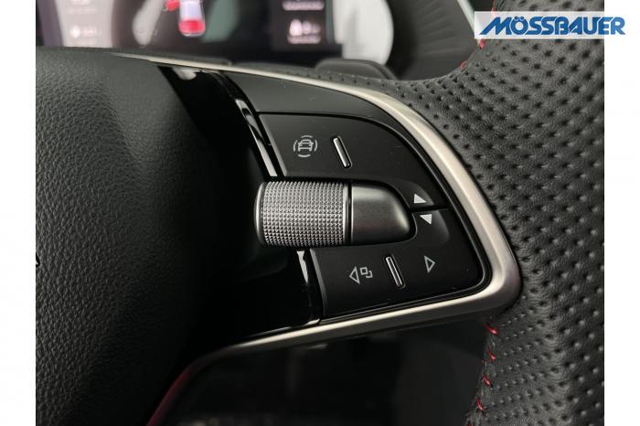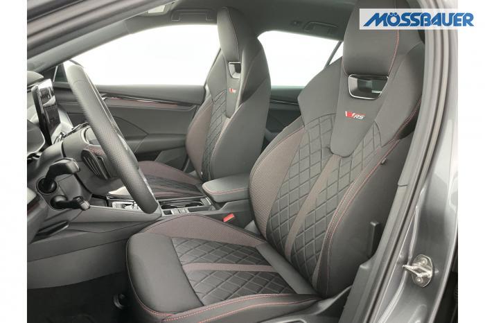 Infotainmentdisplay, Navigationssystem, SmartLink sowie Wireless Smart Link, Sprachsteuerung, LED Ambientebeleuchtung, LED Matrix Scheinwerfer, Lichtassistent, Akustikverglasung in den vorderen Seitenscheiben und Sunset, Ablagefach unter dem Beifahrersitz, Dachhimmelschwarz, Gepäcknetztrennwand, Supersport Lederlenkrad, var. Ladeboden im Gepäckraum inkl. Alu Querträger, 2-Zonen Climatronic, Infotainment Plus & Fahrassistenz Plus, 19'' Leichtmetallräder Elias anthrazit/schwarz, Bremssättel rot lackiert, Alarmanlage, Rücksitzlehnenmit Fernentriegelung, Sportsitze RS Stoff mit roten Ziernähten, beheizbare Vordersitze, Garantiezeit 5 Jahre max. 100.000 km Laufleistung, Digital Cockpit Plus, Fahrprofilauswahl, Head-Up Display, Intelligenter Geschwindigkeitsassistent (ISA), Intelligenter Parkassistent, Kessy, Parksensoren vorne und hinten, Rückfahrkamera, Speedlimiter, Stoßfänger RS, elektrische Heckklappenbedienung mit Komfortöffnung, Adaptives Fahrwerk DCC, Außenspeigel schwarz glänzend, Außenspiegel elektrisch anklappbar, Außenspiegel elektrisch beheizbar, Außenspiegel elektrisch einstellbar, Dachreling schwarz glänzend, Kühlergrillrahmen schwarz glänzend, Pedale im Alu Design, Sportauspuff Endrohr links/rechts, Vorbereitung Anhängerzugvorrichtung, EU-Fahrzeug mit Tageszulassung
