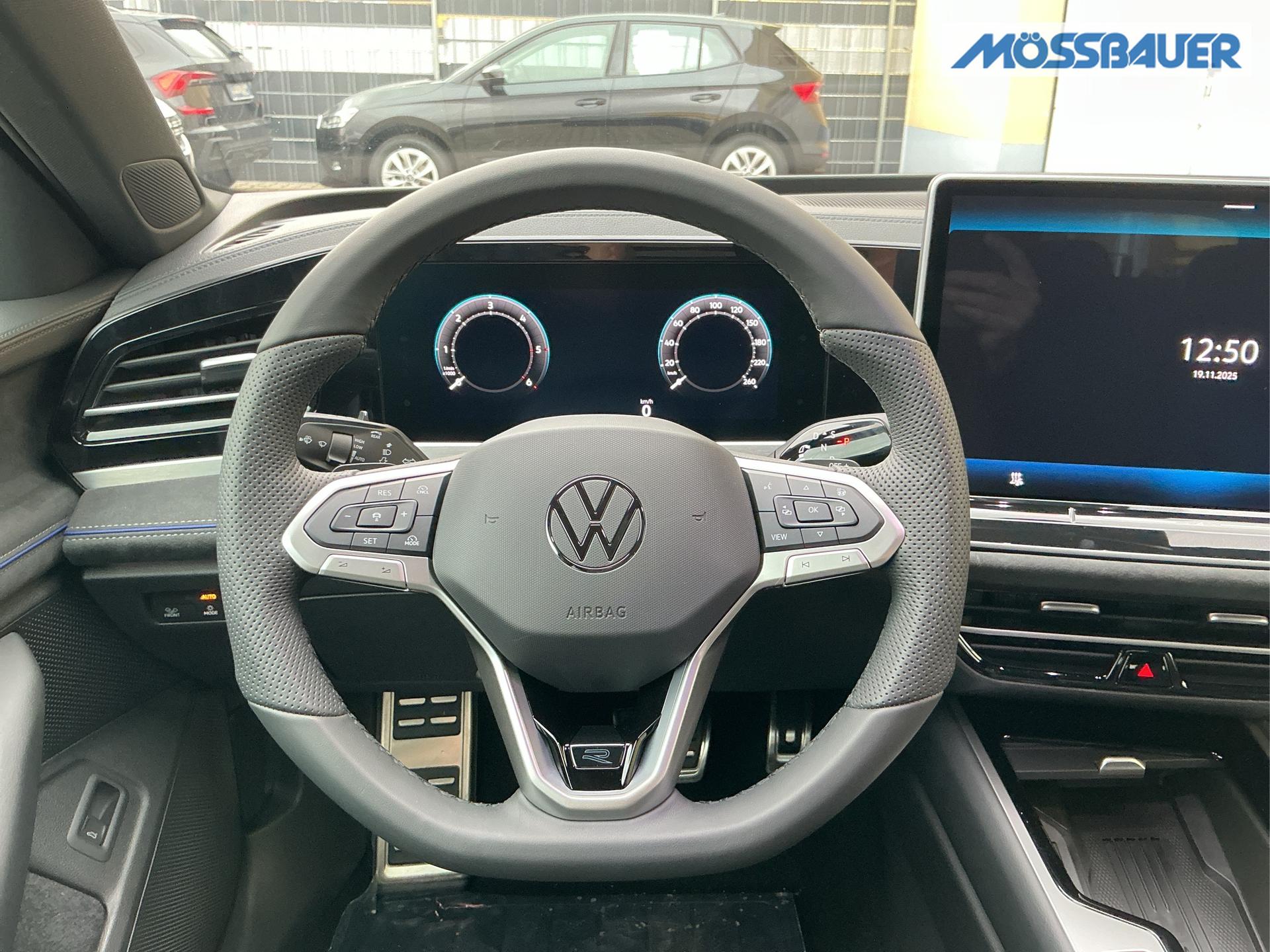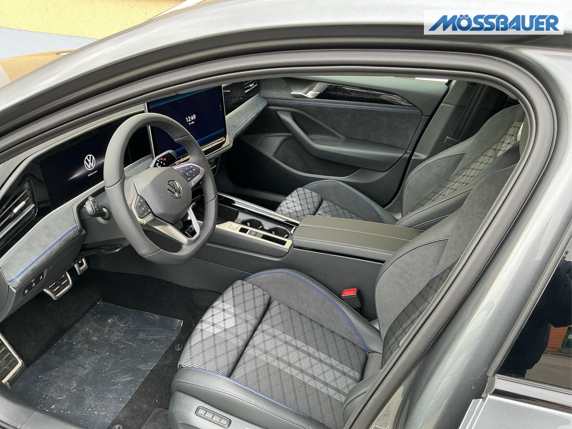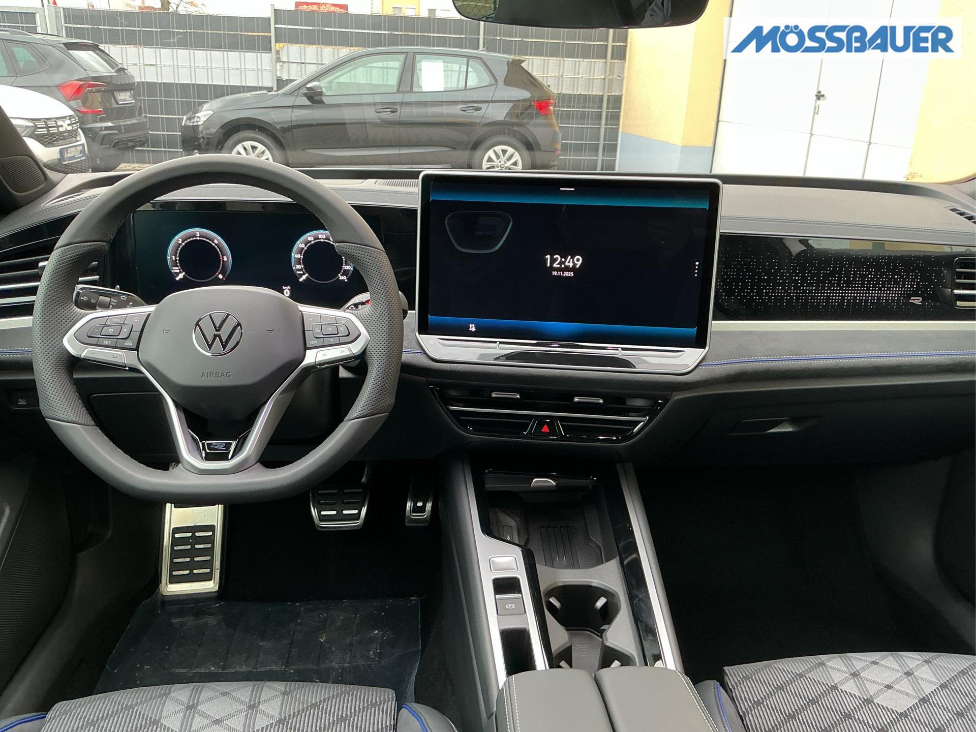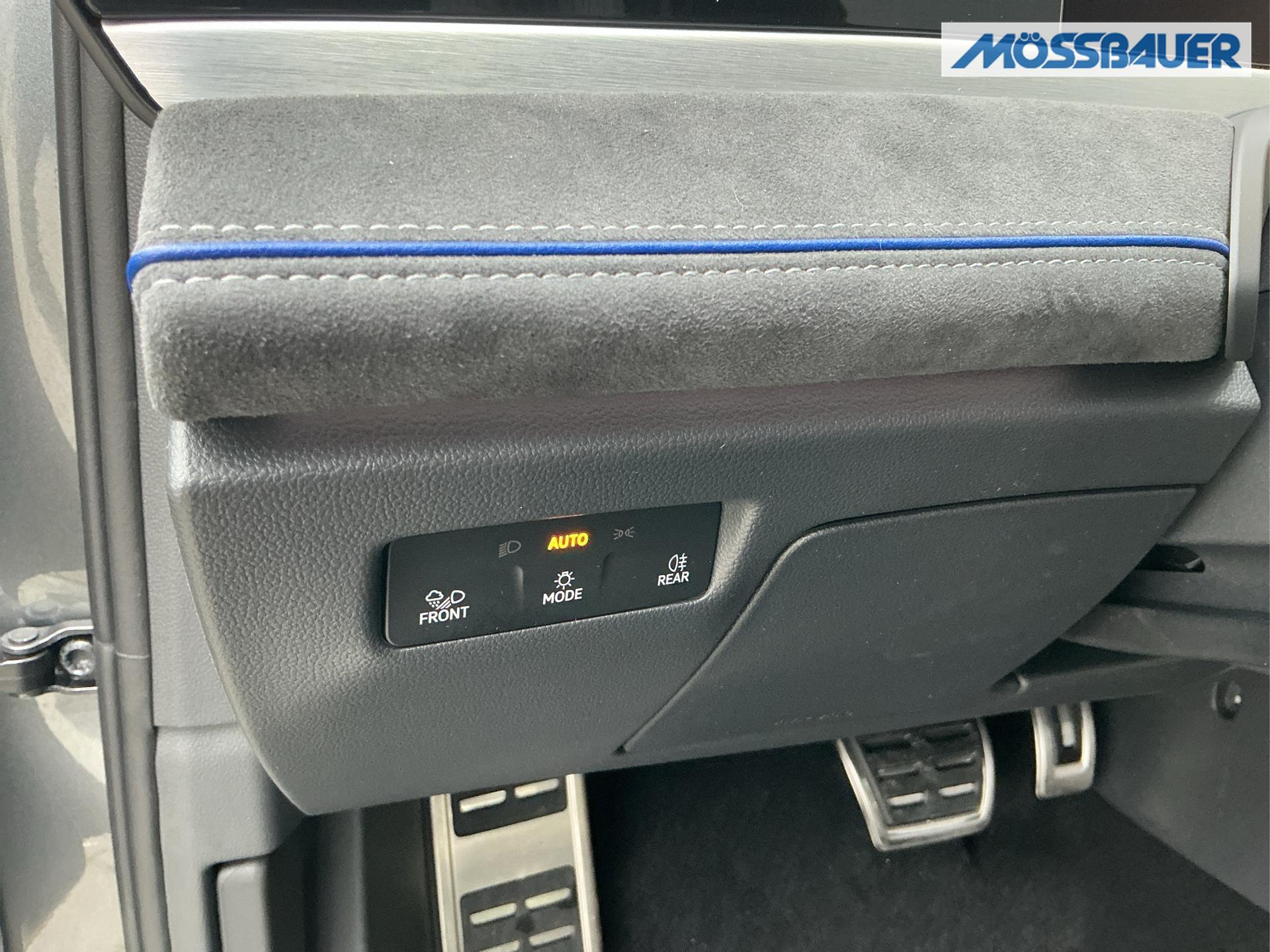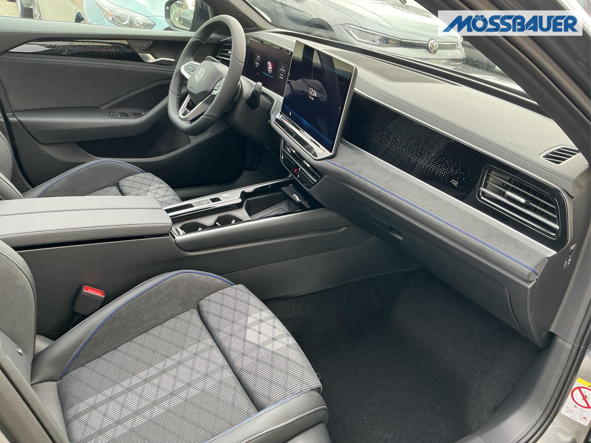 Innenausstattung Innenausstattung: [ZN] R-Line Sportsitze in Schwarz mit blauer Kontur, Sitzmittelbahnen der Vordersitze und der äußeren Rücksitzplätze in Stoff, Sitzwangen in Art Velours (Sitze: Soul-Schwarz,Instrumententafel: Soul-Schwarz,Teppich: Schwarz,Himmel: So